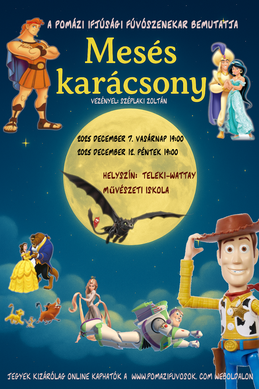 2025. december 7-én vasárnap és 12-én pénteken "Mesés Karácsony" című koncertünk 19 órakor kezdődik, melyre szeretettel várunk minden kedves érdeklődőt a Teleki-Wattay Művészeti Iskola hangversenytermébe.